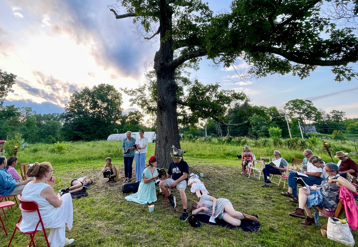 Perhaps you’ve never imagined yourself in a Shakespeare play? Throw your worries away! You do not need to memorize your lines. Just get your tongue around the words and enjoy them. There will be a zoom read through before the event. The main thing is to come together under the oak tree and indulge in the pleasures—fairies, magic, love, donkeys, etc—-of this never old comedy.